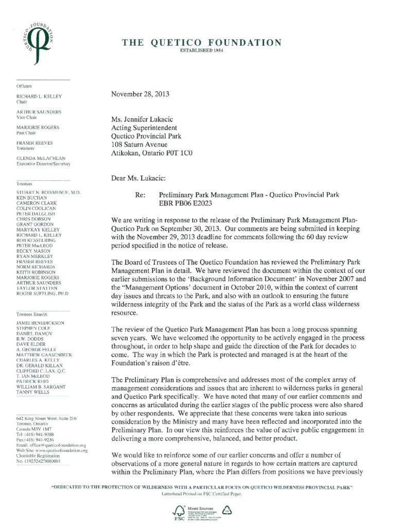Our response to the preliminary Quetico Park Management Plan
