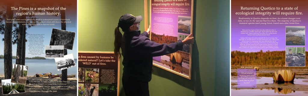 Construction is almost finished on an interpretative display that will focus on educating visitors about the role of forest fires in traditional indigenous culture and in sustaining the red and white pine populations. The exhibit will update an aged interpretive display at the Dawson Trail Campground. The Friends of Quetico and the Quetico Foundation are working together to financially support this important project.